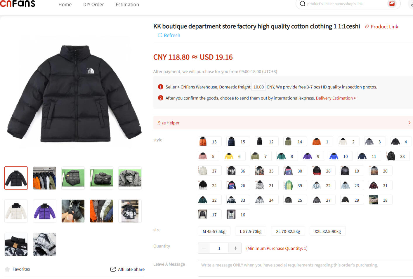 Upon reaching the item page on CNFans, you'll be greeted with a plethora of choices and information. Take a moment to familiarize yourself with the various options, including color, size, and version. When selecting the size, make sure to follow the provided instructions or leave a note specifying your preferred size. Some items may have a limited range of sizes, so choose carefully based on the available measurements or size charts.