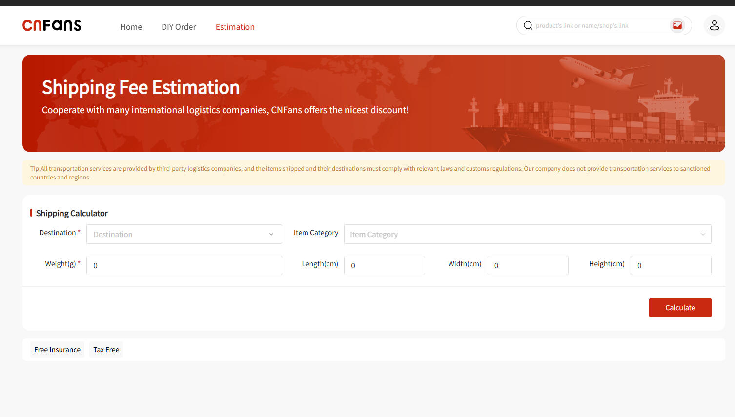 CNFans provides a useful tool called the estimator, accessible by adding an item to your cart and clicking on it. This tool offers information regarding weight, size, and shipping costs. By selecting the appropriate shipping line and adjusting options like removing shoeboxes to reduce volume, you can estimate the total cost of your purchase accurately.